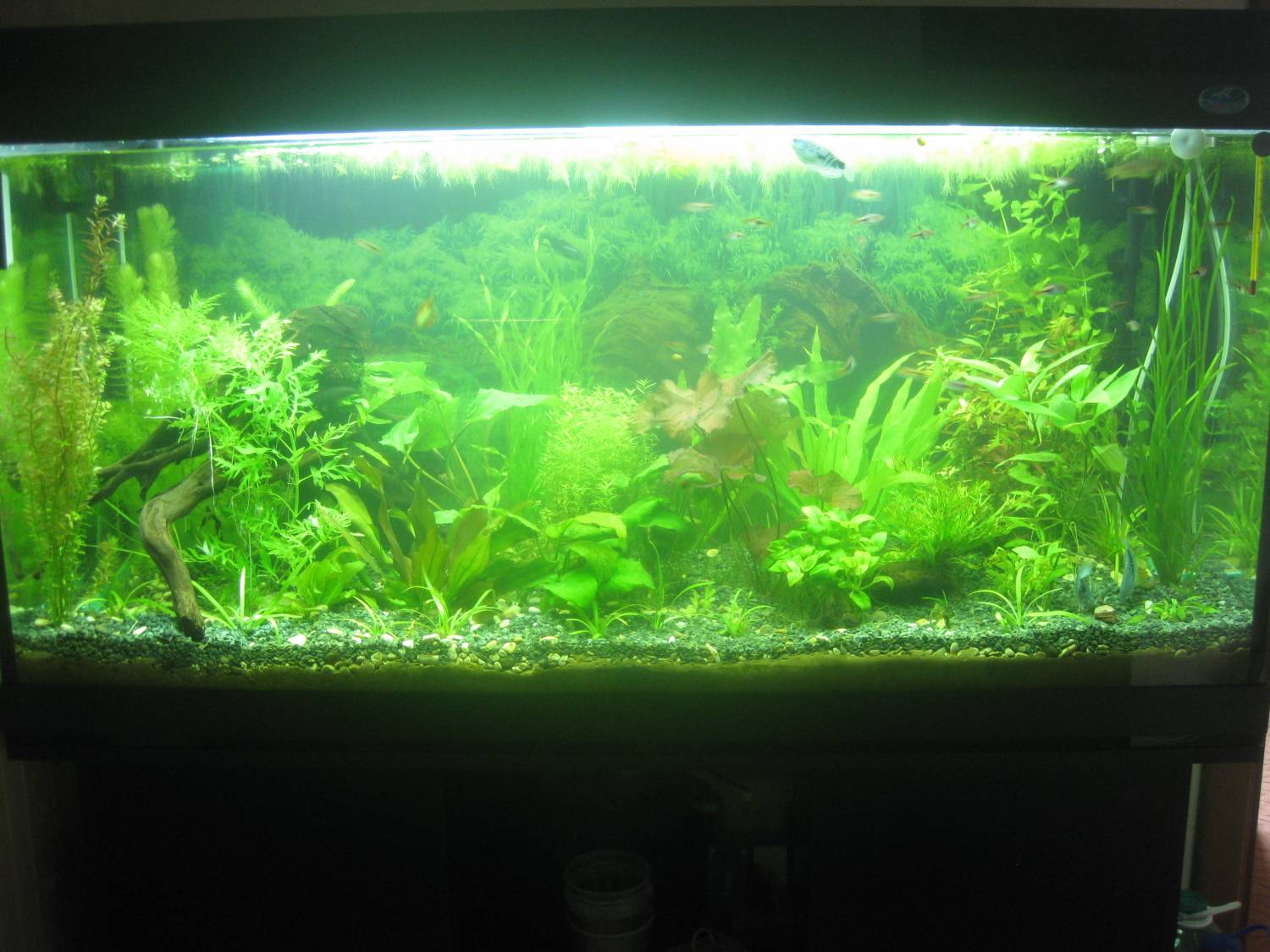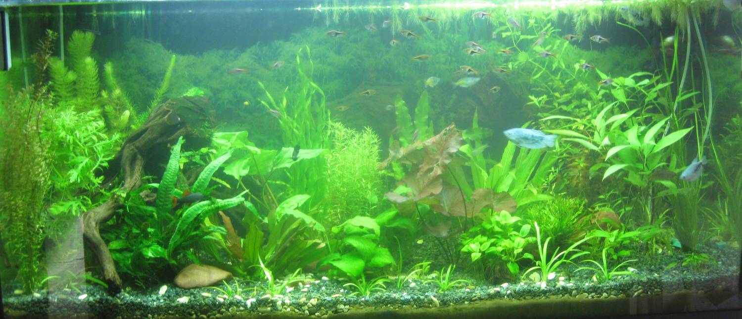 Смотрела я на этот несчастный папоротник в сомовнике и решила всё-таки спасти несчастного, запихнула у коряги. Зато лабео как обрадовался, только и крутиться вокруг старого друга, теперь хоть у него есть запас еды (в сомовнике папоротник атаковали бурые водоросли) Слева хочу проредить, и пожалуй избавлюсь от роталы индийской и за роголистником мучается элодея, её тоже думаю сплавить. Роголистнику не понравилась пересадка из солнечного местечка, теперь он остановился в росте и некоторые его конечности начали коричневеть. Проблема со светом есть и на другом конце аквы. Справа все растения решили тянуться к серединке (прошу заметить это не течение их так нагнуло). Я думаю причина ещё в том, что я допустила небольшое течение и вся пистия столпилась в правом углу. (кстати если кому нужна могу отдать, она мешается, а рука не поднимается её выкинуть) И всё равно мне кажется что видов растений слишком много... =\ |