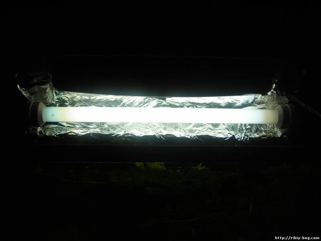 Это классика. А свет вот такой, одна лампа 15 ватт на 80 литров.
