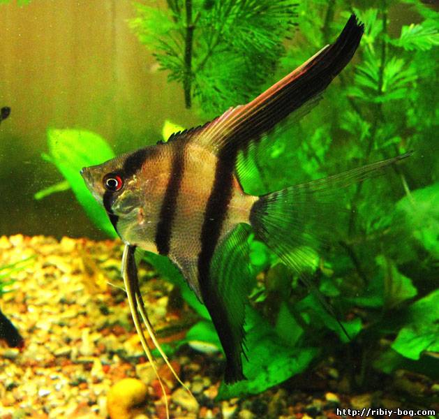 скалярия суматраниха альбиносиха. так же их часто называют "барбус Гон-Конг". жалко хвост в кадр не влез.