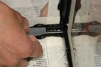 Аквариум кладется на бок, ребро намазывается клеем (только не забудьте обезжирить и ребро, и место под него в аквариуме), прикладывается и фиксируется, фиксацию можно убрать минут через 15-20, но аквариум поднимать или переворачивать можно только через сутки. Через день та же процедура, но с другой стороны. Недостаток этого метода налицо – сутки сохнет одно ребро, еще одни второе так из гаража и не вылезешь, а у нас жены, дети J.
