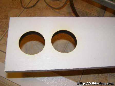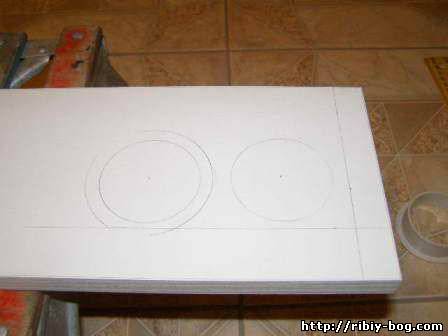 2. На царге, которая будет задней частью, делаю разметку под заглушки, они будут служить каналами для труб от внешнего фильтра.