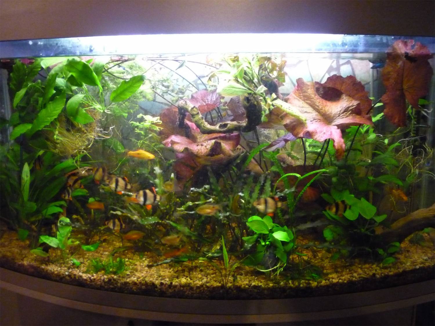 Аква:110 л.Рыбы: сомы, птерики, гурами.Растения:криптокарина,анубиасы, роголистник. |